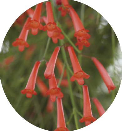 第一种叫爆竹花。你听听这名字,是不是会误以为它就是炮仗花的别名?没错,爆竹花的确有着“炮仗竹”和“炮仗花”的别称;但事实上,此“炮仗花”非彼“炮仗花”,同样可以被称作“炮仗花”的爆竹花,其实是玄参科爆仗竹属的一种多年生草本植物,而非茎蔓纤软、向上蔓延的攀援植物。爆竹花和炮仗花一样,也长有一串串红色的、花冠呈长筒形的聚伞花序,鲜红色花朵盛开于纤细的枝条上,看上去就像一个个点火即燃的爆竹,给人以喜庆热烈之感,可作盆栽装饰或作吊盆悬挂于廊下、窗前等处,在气候较为温暖的地区还可在墙角、花坛、假山、岩石旁地栽观赏。